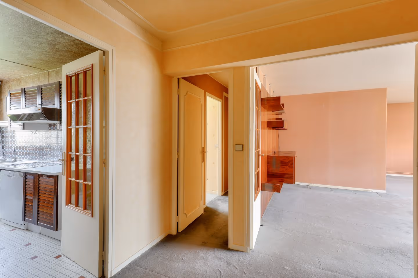 Fontenay-sous-Bois, limitrophe Vincennes, quatier Les Rigollots. Dans une copropriété de standing des années 70 très bien tenue : appartement au troisième étage avec ascenseur donnant entièrement sur jardin. Traversant nord-est/sud-ouest, calme et lumineux, l'appartement comprend : entrée, cuisine indépendante, débarras, séjour double donnant sur large balcon (10m²), dégagement/couloir avec placards, deux chambres (9,83 et 10,83 m²) dont une avec salle d'eau, salle de bains et wc séparés. Possibilité de créer une troisième chambre à la place de la cuisine ou du double séjour. Local vélo dans l'immeuble, vendu avec cave et box (avec alimentation électrique). Possibilité d'acquérir un emplacement de parking en sus du prix. (5.26 % honoraires TTC à la charge de l'acquéreur.)