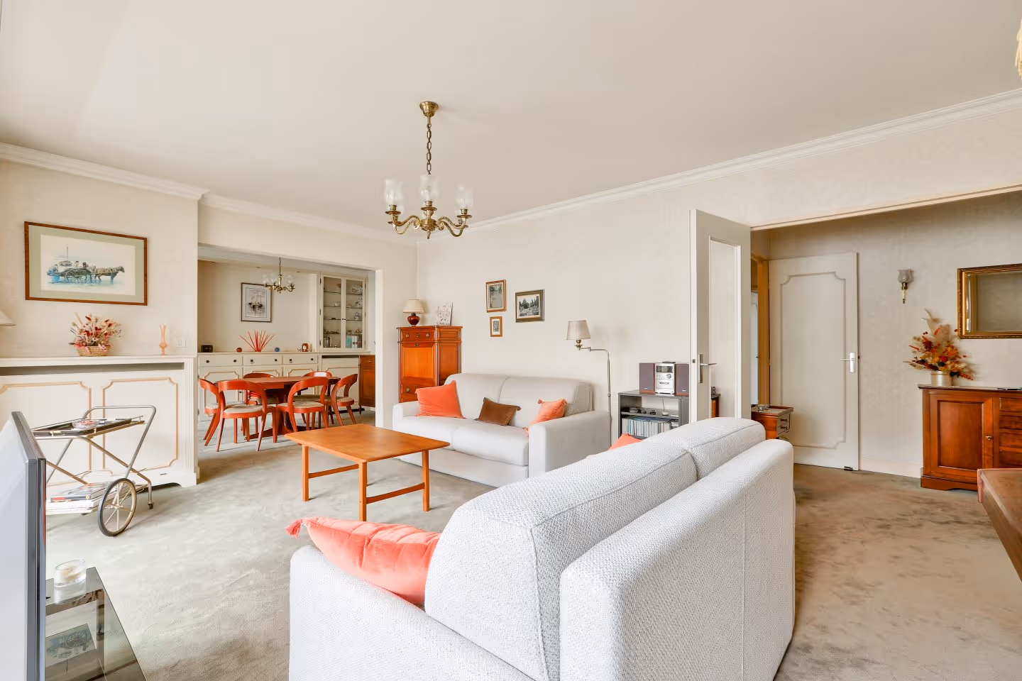 Vincennes, à 5 min à pied du métro Berault (ligne 1) et de la Gare RER, dans une copropriété de standing : appartement de 4 pièces au premier étage (équivalent à un second) avec ascenseur. Traversant sud et nord, vues agréables sur jardin, lumineux, calme et parfaitement agencé, il comprend : entrée, cuisine aménagée dinatoire, séjour double sur balcon, salle à manger avec loggia de 6,56 m², dégagement avec placards; 2 chambres dont une avec balcon (3ème chambre facilement réalisable en lieu et place de la salle à manger), salle de bains, salle d'eau et WC séparés. Double vitrage et volets roulants, chaudière gaz individuelle (eau chaude et chauffage). Vendu avec cave et box en sous-sol (2,5 m x 4,80 m). (4,71 % honoraires TTC à la charge de l'acquéreur.) Copropriété de 41 lots - dont 11 lots habitation. (Pas de procédure en cours). Charges annuelles : 3300 euros.