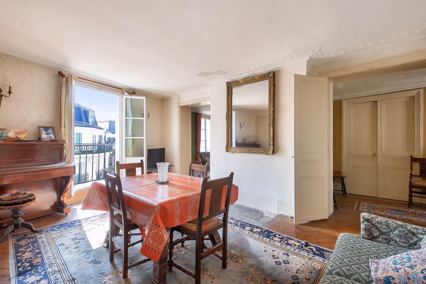 Paris 9, vue Sacré-Coeur, appartement de 4 pièces avec balcon : A deux pas du métro Grands Boulevards, situé au cinquième étage avec ascenseur d'un immeuble ancien récemment ravalé (travaux terminés), cet appartement de 94.68 m² loi Carrez bénéficie d'un balcon de 15 m² offrant une vue magnifique sur le Sacré-Coeur.