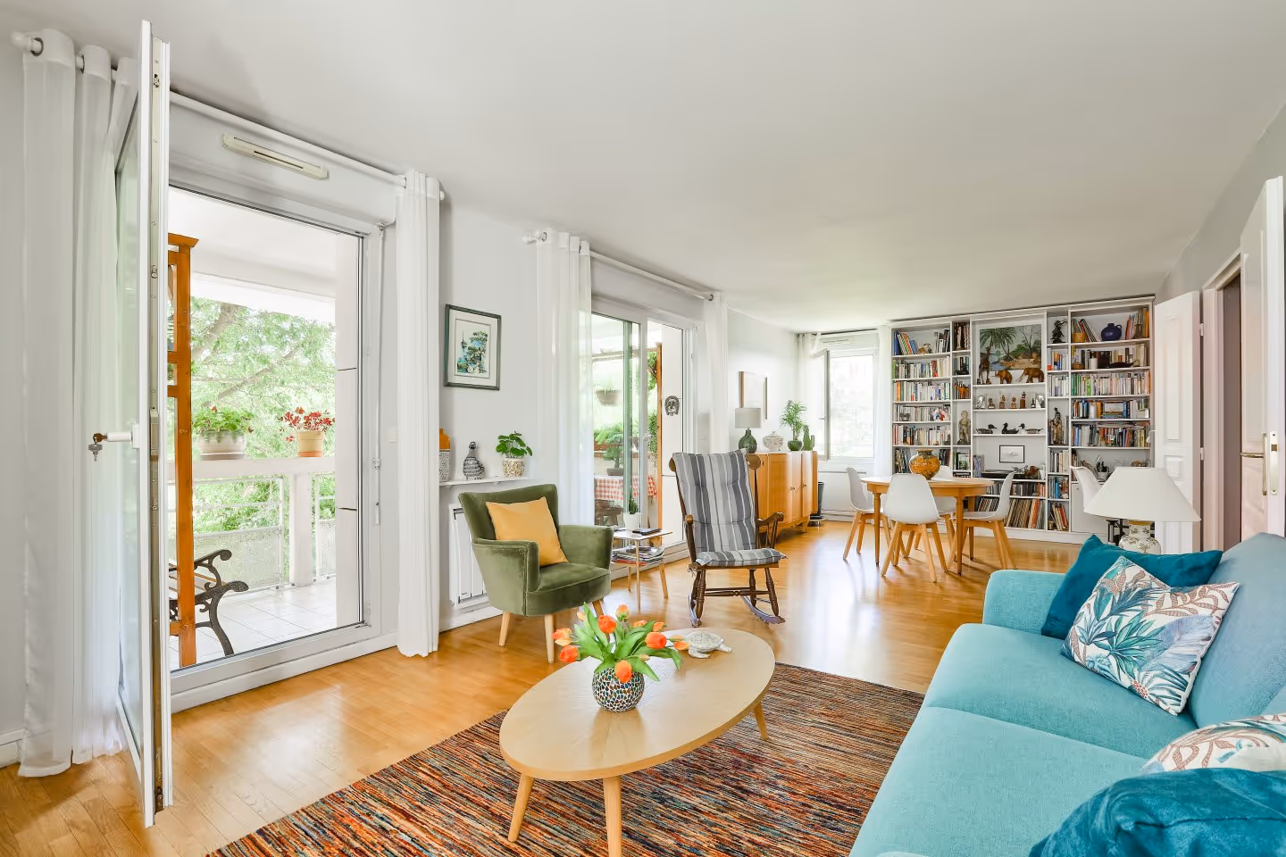 Paris 13, Olympiades. Dans un immeuble de 2000 de standing, découvrez ce bel appartement de 79,46 m² avec terrasse, situé au premier étage avec ascenseur. Traversant et exposé Est/Sud/Ouest sur rue peu passante et jardin, il bénéficie d'une belle luminosité tout au long de la journée. Le bien se compose d'une entrée avec placards, une cuisine indépendante aménagée et équipée, un double séjour donnant sur terrasse de 7,7 m² avec vue jardin, un dégagement, deux chambres avec penderies, une salle d'eau avec wc et des wc séparés. Plan fonctionnel et modulable, permettant la création d'une 3e chambre facilement. Appartement en très bon état : parquet bois massif, fenêtres et porte-fenêtres en PVC double vitrage, volets roulants manuels dans chaque pièce, porte 3 points, électricité aux normes. Vendu avec une cave et un emplacement de parking. Situé à 5 min à pied du métro Olympiades (ligne 14), 15 min de Tolbiac (ligne 7). Écoles maternelles et élémentaires dans la même rue. Plan sur demande. (4,11 % honoraires TTC à la charge de l'acquéreur.) Copropriété de 159 lots - dont 50 lots habitation. (Pas de procédure en cours). Charges annuelles : 2230 euros.