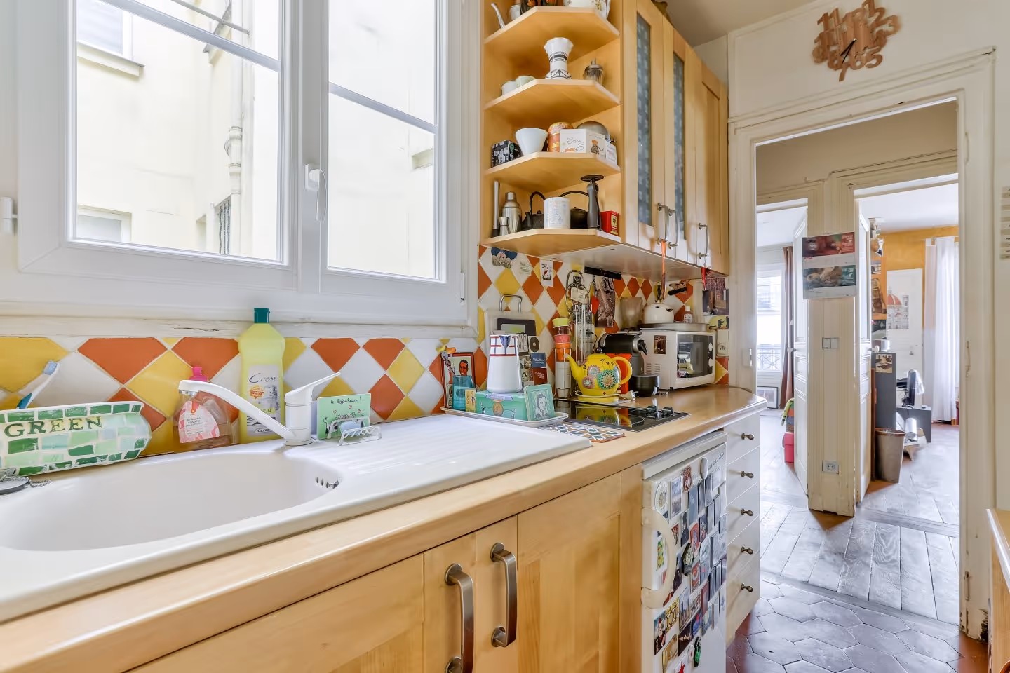 Paris 4e arrondissement, rue des Archives. Dans un très bel immeuble en pierres de taille, en plein cœur du Marais, au pied du Jardin des Archives nationales, nous vous proposons un appartement de 35,5 m² loi Carrez, au deuxième étage avec ascenseur. Il comprend : entrée, WC séparés, séjour et chambre sur rue Pecquay et cuisine et salle d'eau sur cour. Parquet bois massif, fenêtre double vitrage dans chaque pièce, hauteur sous plafond 2,65 m. Vendu avec cave. (4,17 % d'honoraires TTC à la charge de l'acquéreur.) Copropriété de 70 lots (Pas de procédure en cours). Charges annuelles : 1800 euros.