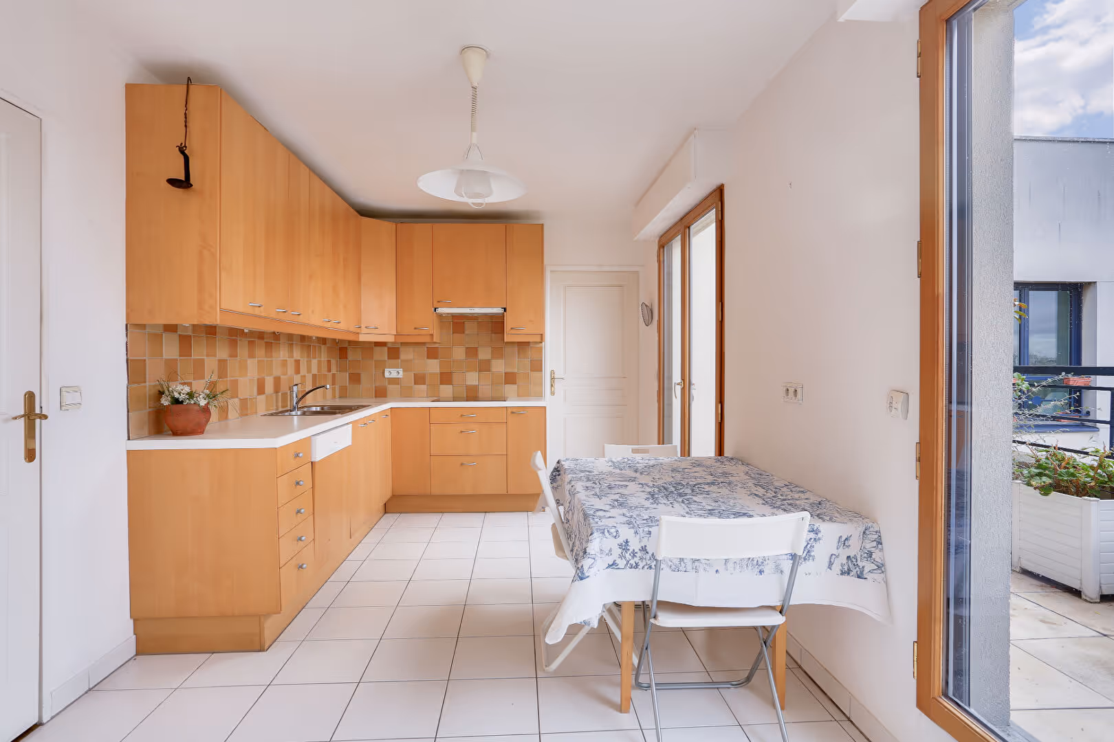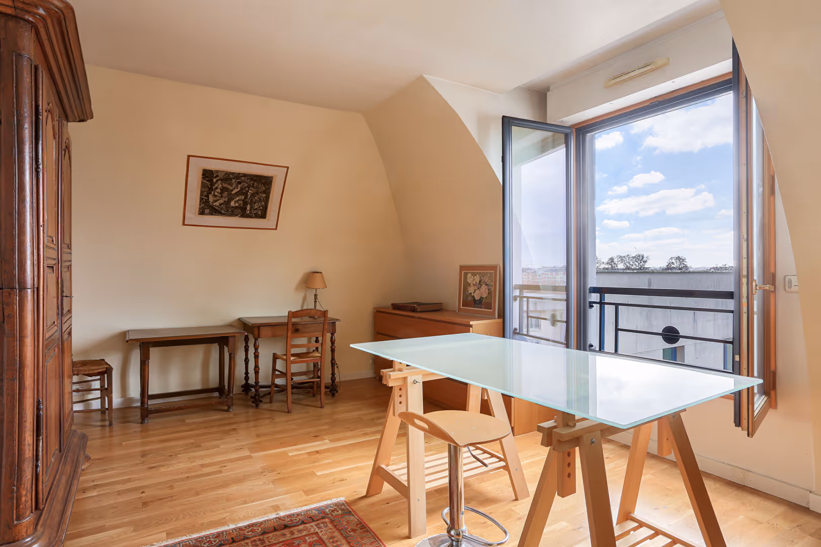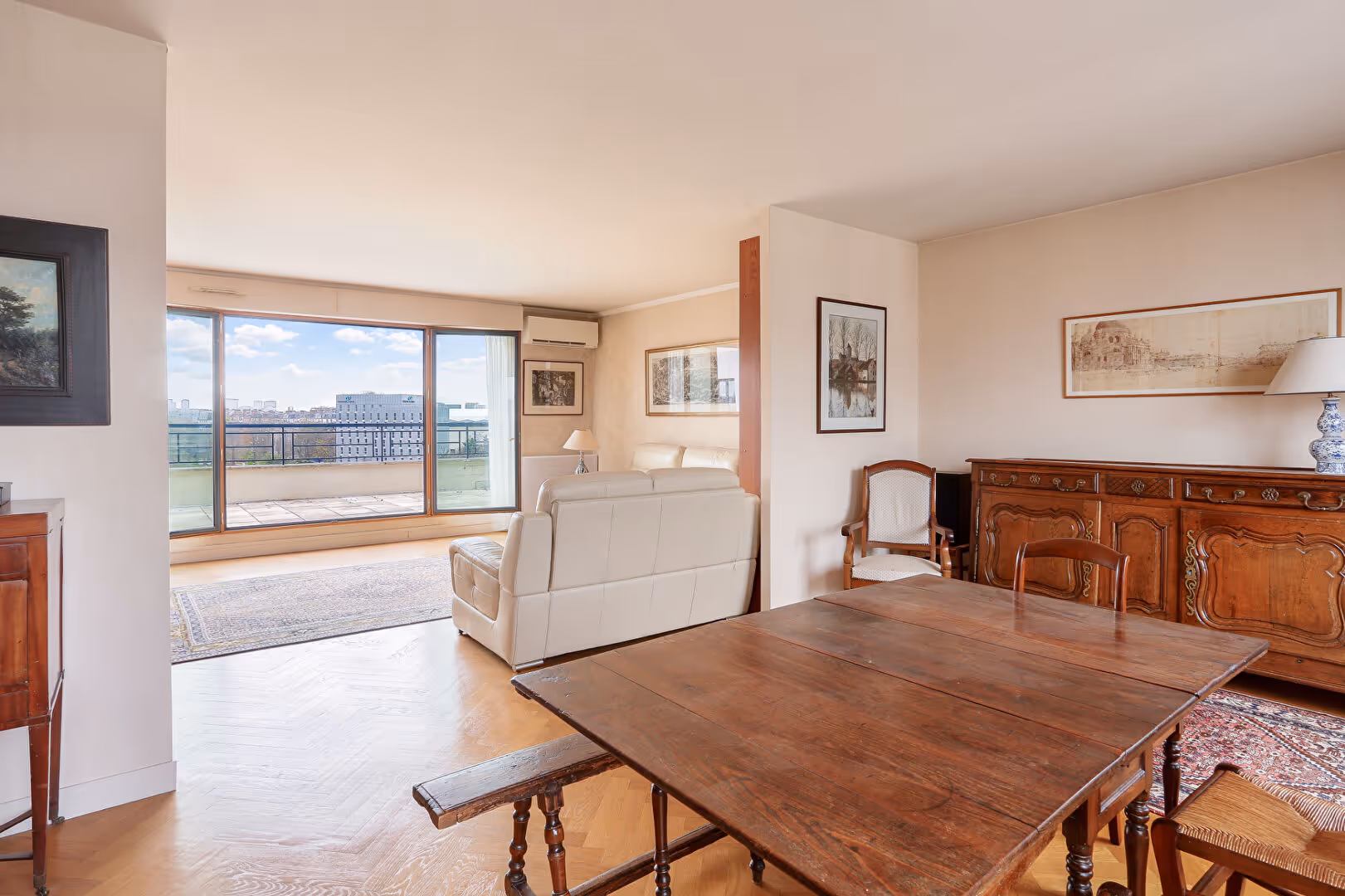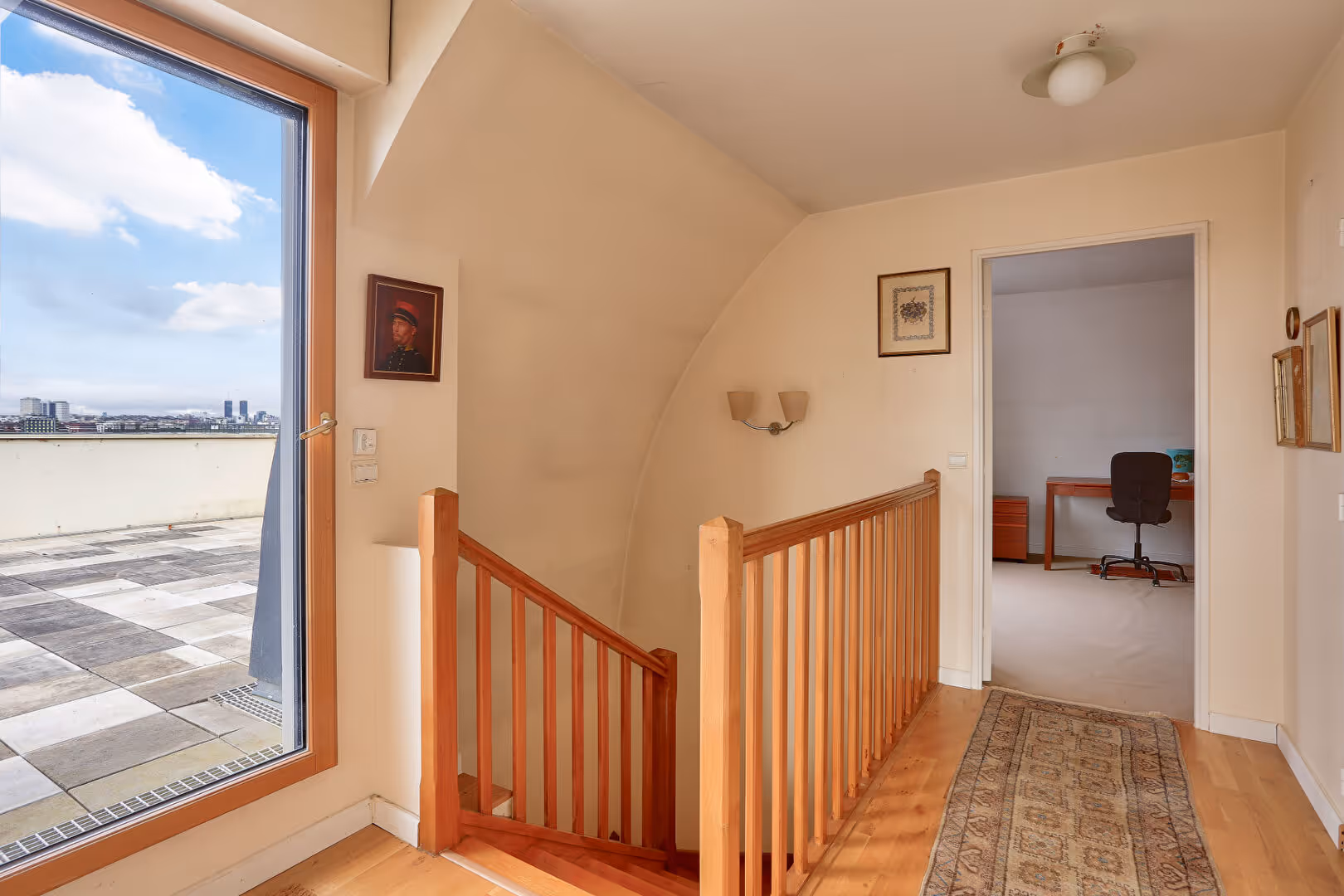 Vente interactive par appel d'offres: Saint-Mandé Sud, à proximité immédiate du Bois de Vincennes, ce duplex en dernier étage, situé au sein de la résidence Villa Sainte-Marie, très recherchée, calme et sécurisée, offre une surface de 149,77 m² Loi Carrez et bénéficie de deux terrasses totalisant près de 70 m², avec une vue dégagée sur Paris.