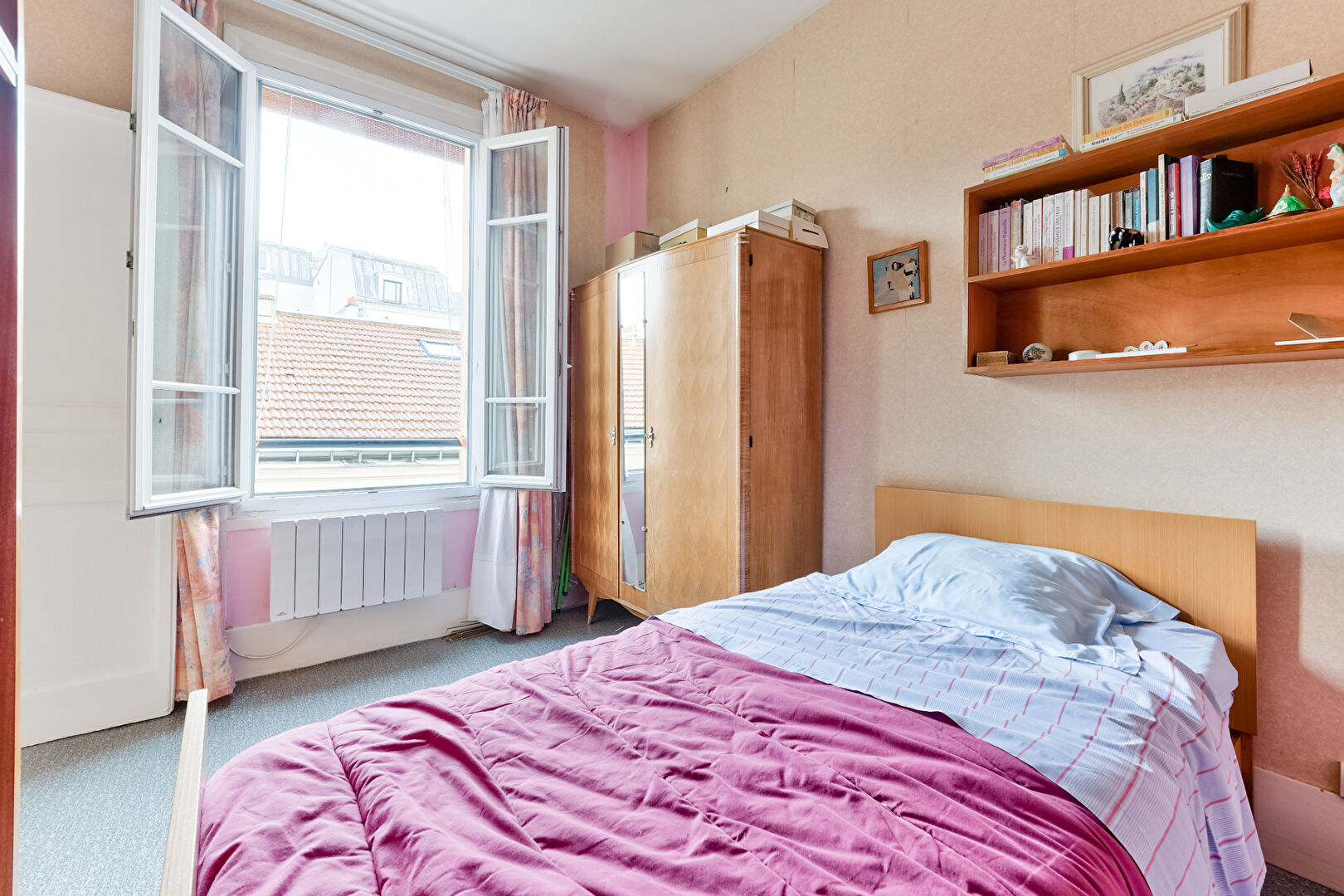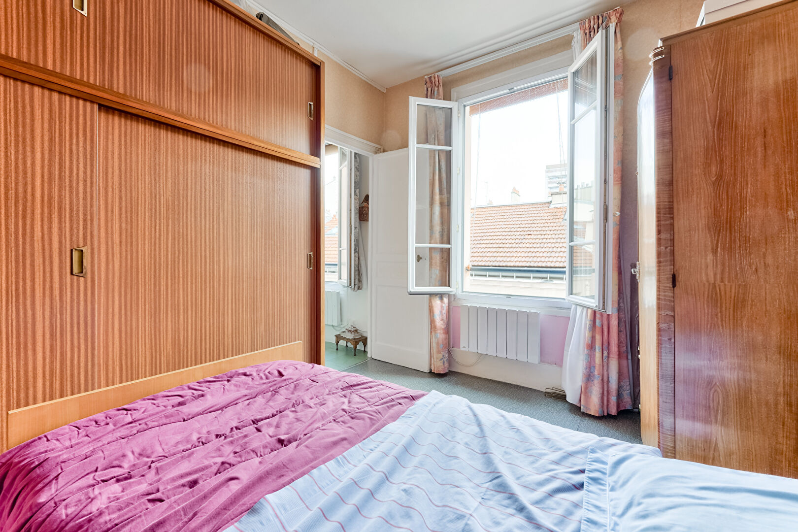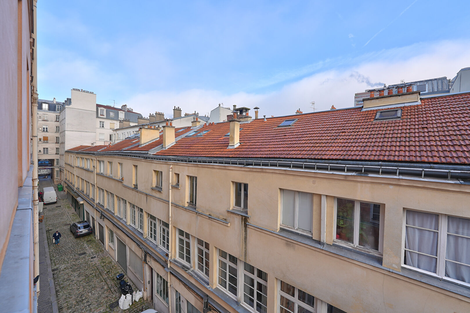 Bénéficiant d'une excellente luminosité, d'une hauteur sous plafond de 2,90 m et d'une vue dégagée sur les toits, l'appartement présente un plan optimal sans perte d'espace.